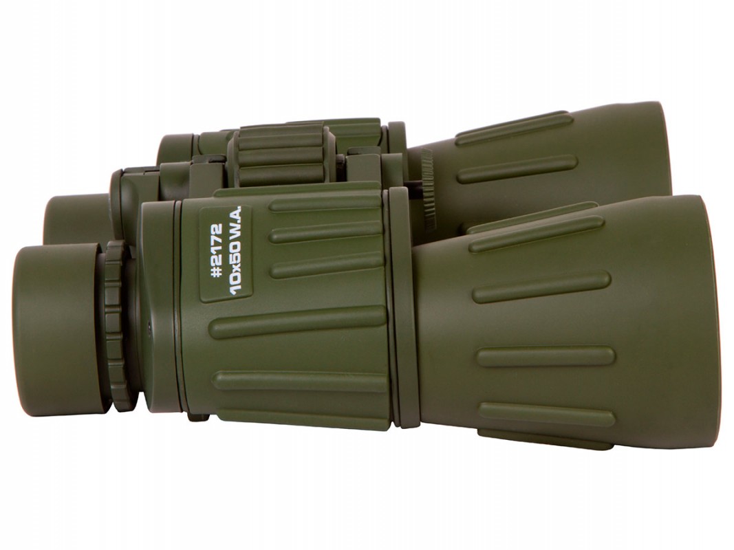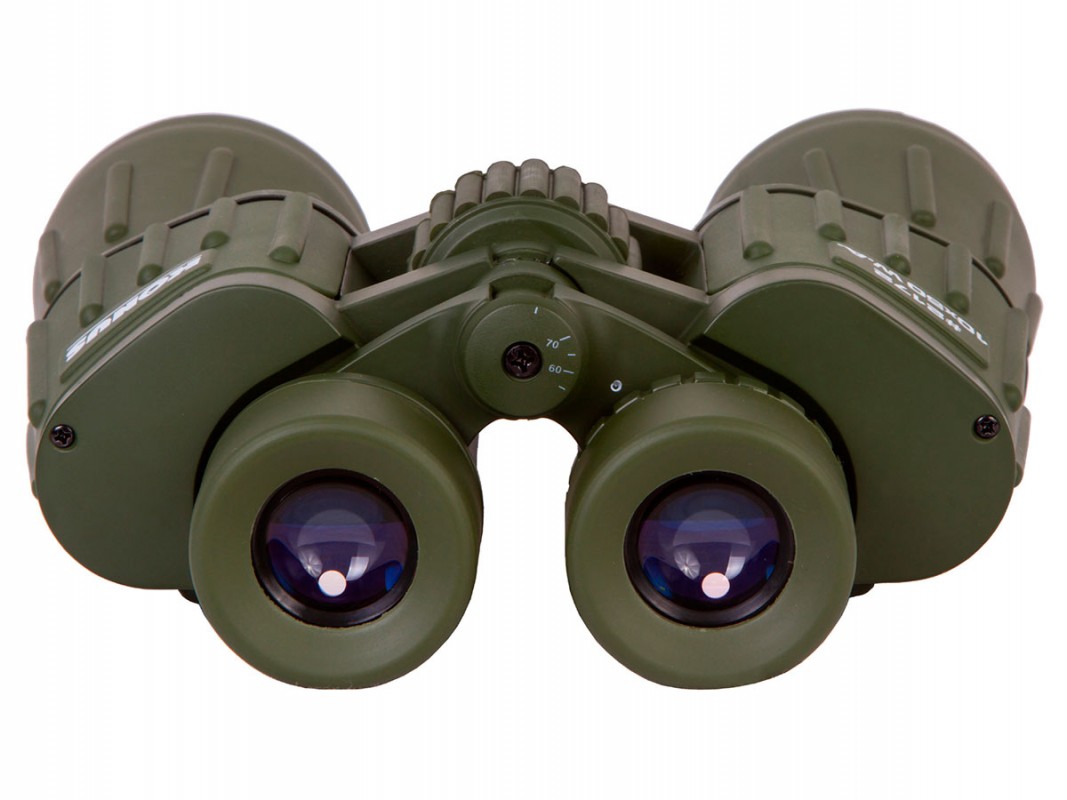 Большие объективы диаметром 50 мм и оптические элементы, выполненные из качественного стекла BaK-4, с многослойным просветляющим покрытием обеспечивают качественное и яркое изображение и позволяют использовать бинокль при слабой освещённости. Фокусировка выполняется с помощью центрального фокусировочного колеса. Кольцо диоптрийной настройки находится на правом окуляре.Бинокль отлично подходит для комфортного наблюдения в течение длительного времени благодаря эргономичному дизайну. Резиновое покрытие защищает корпус от ударов, а также позволяет надёжно удерживать бинокль даже мокрыми руками, не боясь, что он выскользнет.